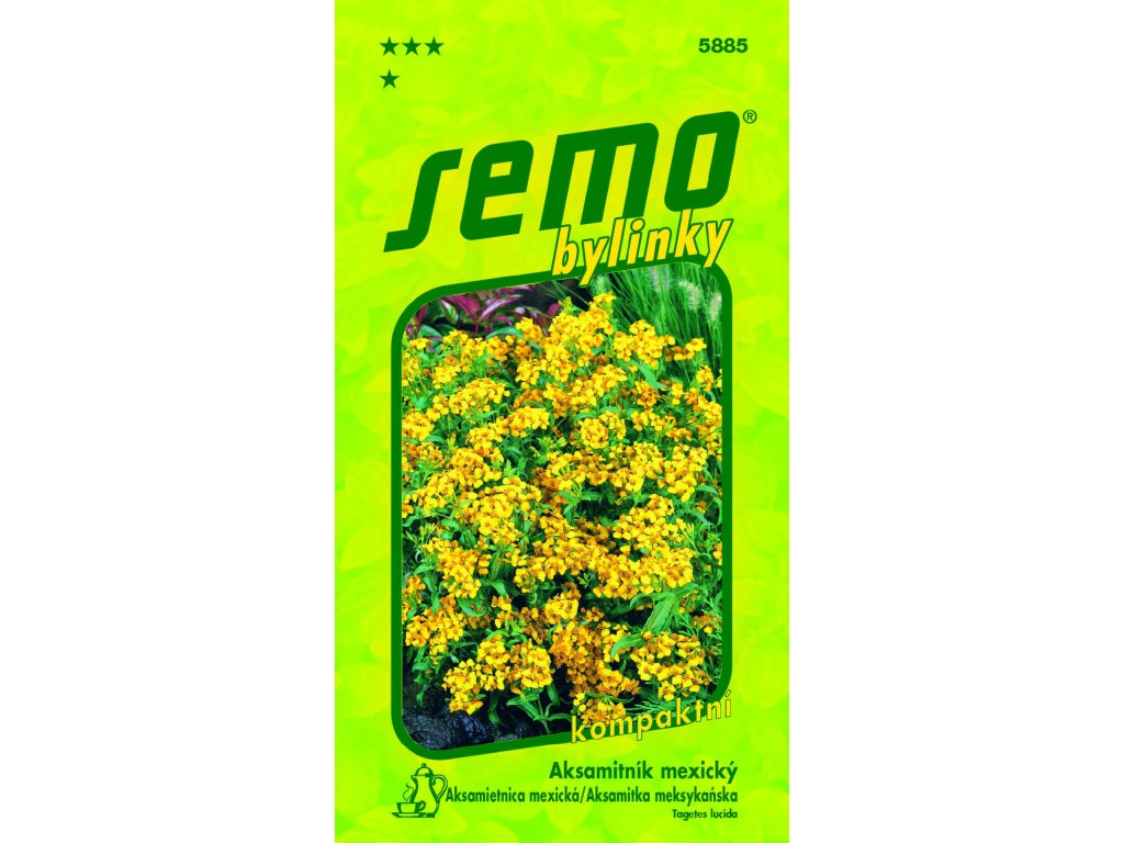"TARRAGON MEXICKÝ" – je príjemne aromatická cca 40 cm vysoká letnička. Tradične sa užíva čaj z aksamitníka na upokojenie žalúdka, na celkové uvoľnenie a na druhý deň ako rýchla pomoc po prehýrenej noci. Nálev z celej rastliny sa pije pri bolestiach brucha alebo sa pridáva do kúpeľa pri reumatických ochoreniach. Potláča paranoidné stavy, využiť ho môžete aj pri podávaní silnejších stimulujúcich látok. Pred riadením motorového vozidla mexický tarragónový čaj (ani iné lektvary z neho pripravené) radšej neužívajte, mohol by Vás síce pred jazdou upokojiť, ale možno až príliš a možno aj navždy. Kvety aj listy z chemicky neošetrovaných, doma vypestovaných rastlín, môžeme používať čerstvé aj sušené. Pridávame ich aj do omáčok, polievok, šalátov, používajú sa na mäsové aj zeleninové jedlá. Kurčatá ochutené týmto korením sú vynikajúce a chuťovo nedostižné.