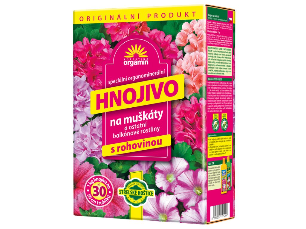 Orgamín na muškáty, surfínie a ďalšie balkónové rastliny je výdatné, ekologicky priaznivé organicko-minerálne hnojina, ktorého významnou dôležitou súčasťou je. Táto prírodná surovina je obzvlášť cenená pre obsah organicky viazaného dusíka, ktorý sa pôsobením pôdnych mikroorganizmov uvoľňuje postupne, takže je rastlinami maximálne využitý po dlhšie vegetačné obobie. V optimálnom pomere sú v tomto hnojive zastúpené aj ostatné zdroje živín, potrebných k harmonickému vývoju a zdravému rastu všetkých balkónových rastlín.