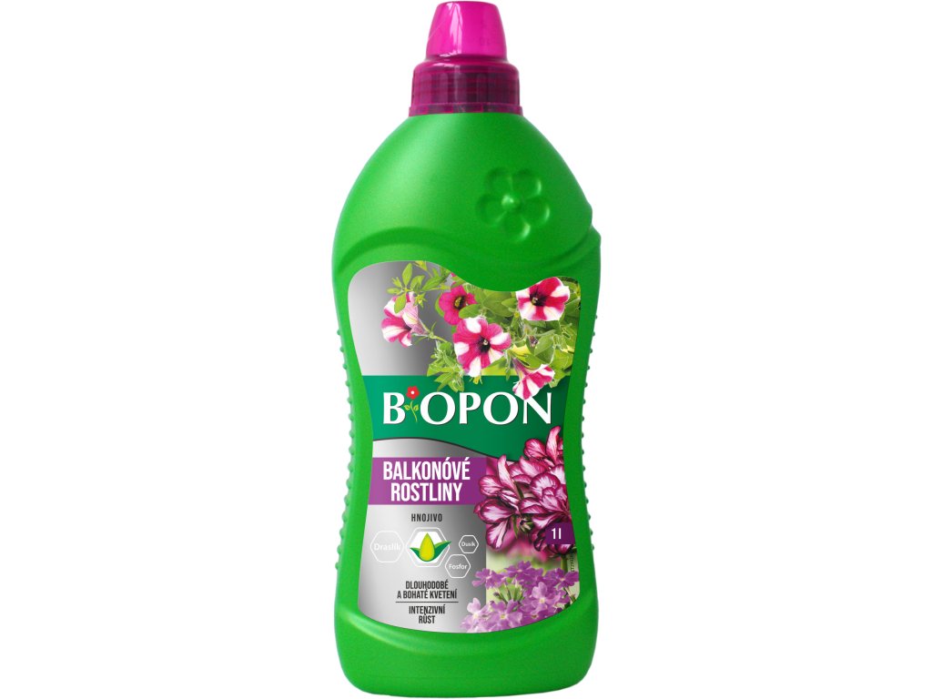 Biopon pre balkónové rastliny je viaczložkové minerálne hnojivo určené pre balkónové a terasové rastliny. Obsah dusíka v amidovej forme predlžuje účinnú dobu. Je dostačujúce rastliny hnojiť každých 10 dní. Optimálne vyberané množstvo draslíka rastliny povzbudzuje k bohatému kvetu.