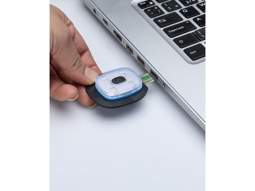- dobíjanie cez USB konektor (svetlo sa jednoducho vyberie z čiapky a vloží sa do USB portu v počítači)