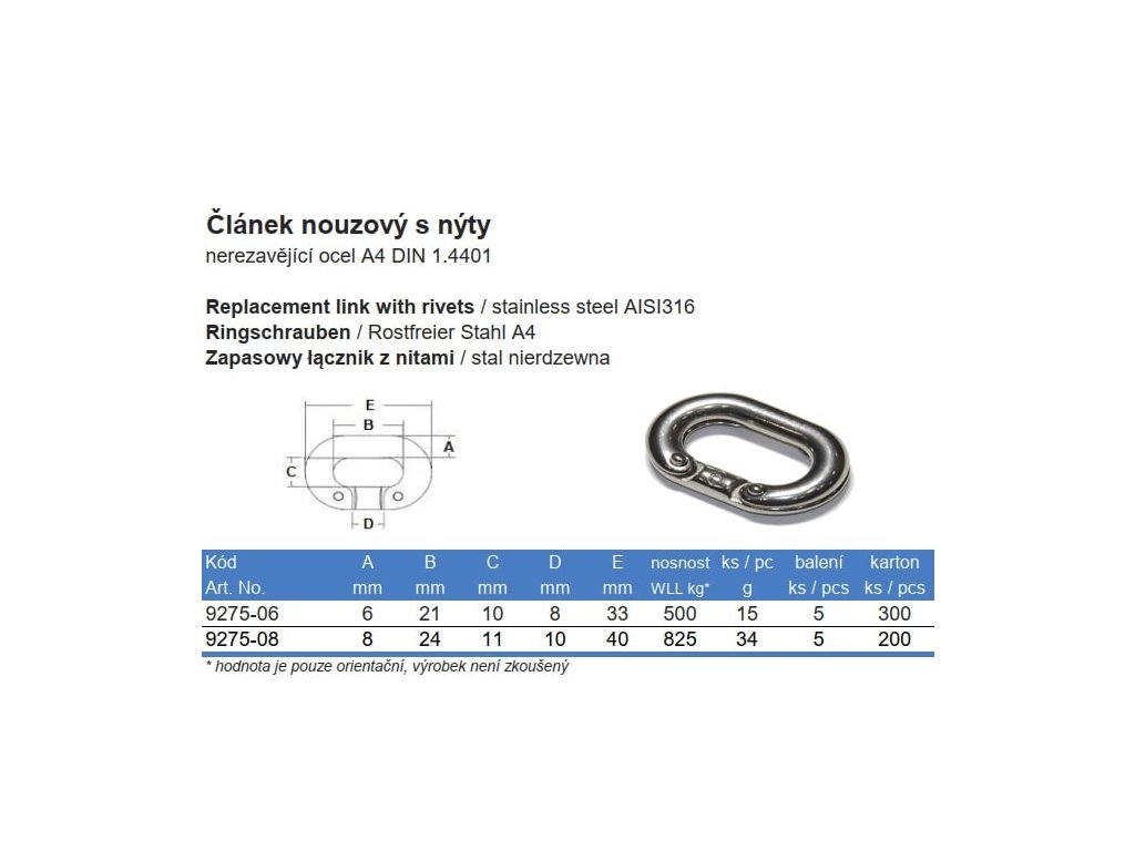 Článok núdzový s nitmi nerezový