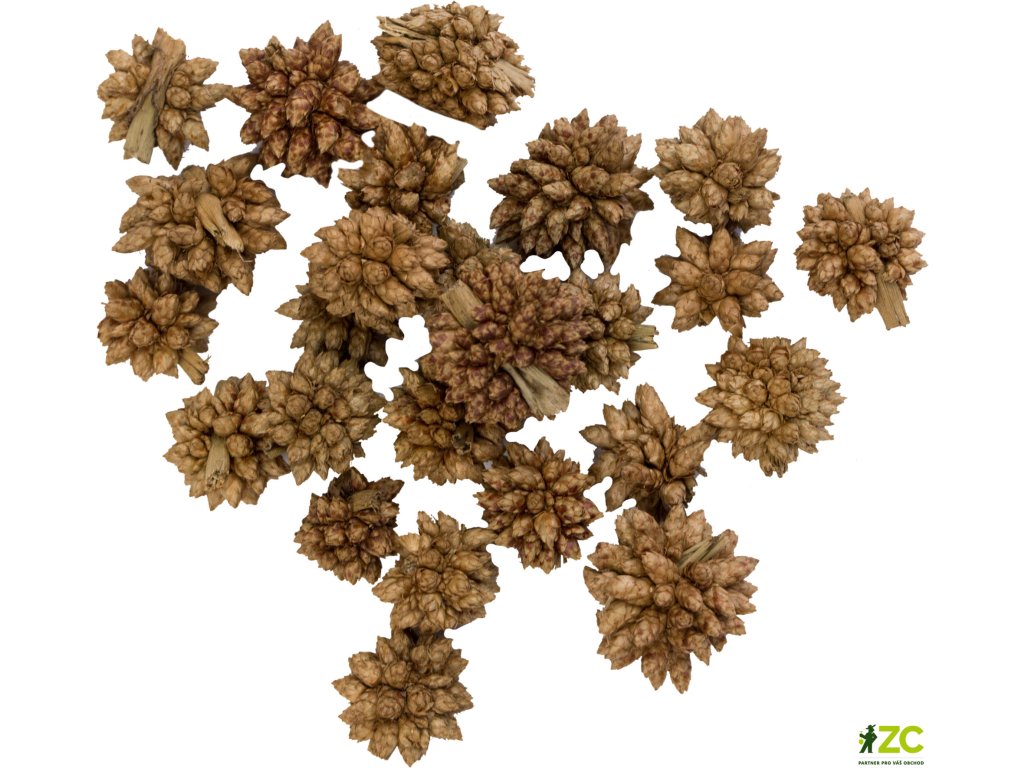 Dekorácia Star Flower je štylizovaný kvet s hviezdicovým tvarom okvetných lístkov. Dekoračný prírodný prvok pre vence, misy, aj sezónne výzdoby. Prírodný sušený materiál vhodný na aranžovanie do interiérových dekorácií. drevom.