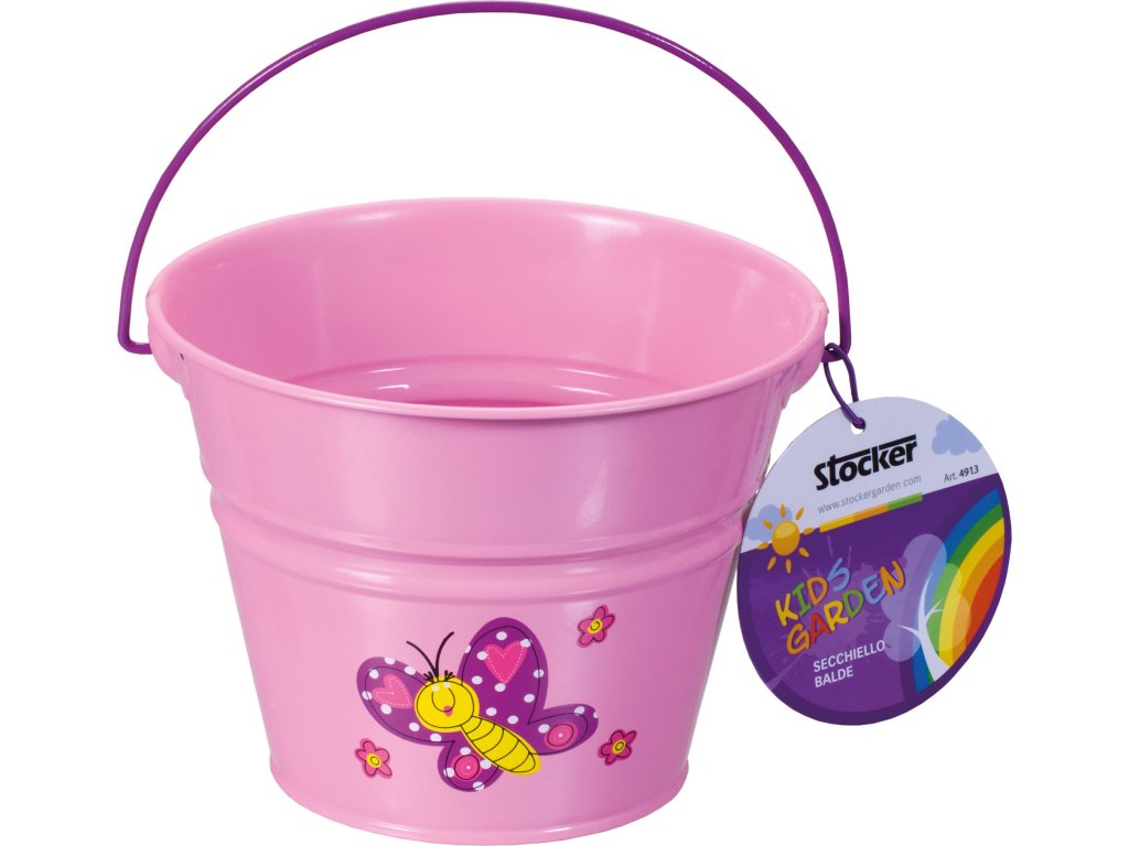 Detský kovový kýblik v ružovej farbe s obrázkom s detským motívom.