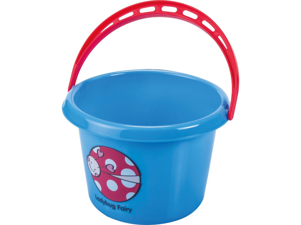 Detský plastový vedierko v modrej farbe s obrázkom s detským motívom.