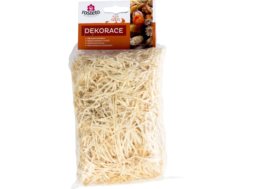 Drevitá vlna určená na dekoratívne účely. Skvele sa hodí na dekoračné účely ako je výplň darčekových škatuliek, krabíc s priehľadným vekom, krabíc na víno, syr atď. Je vyrobená z mäkkého odkôrneného dreva, je 100% prírodná a má vďaka svojim vlastnostiam všestranné využitie. Drevitú vlnu využijete nielen pri balení darčekových predmetov, ale aj na dekoráciu. Šírka vlákna 2 mm - hr. vlákna 0,10-0,15 mm.