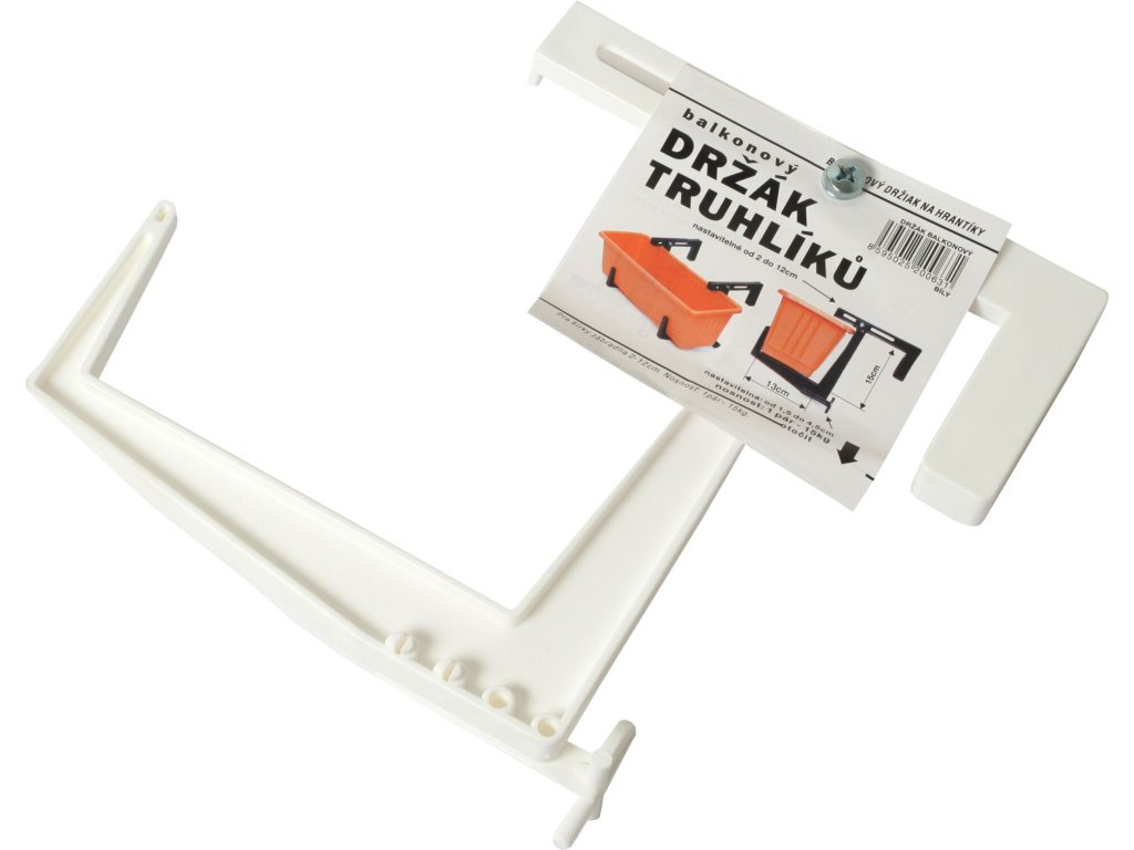 Popis:Plastový držiak na balkón k kvetináči do šírky 13 cm. Nosnosť jedného páru je 20 kg ( hrantík do dĺžky 60 cm ). Držiak je vyrobený z vysoko kvalitného plastu odolný voči slnečníku žiareniu a mrazu.