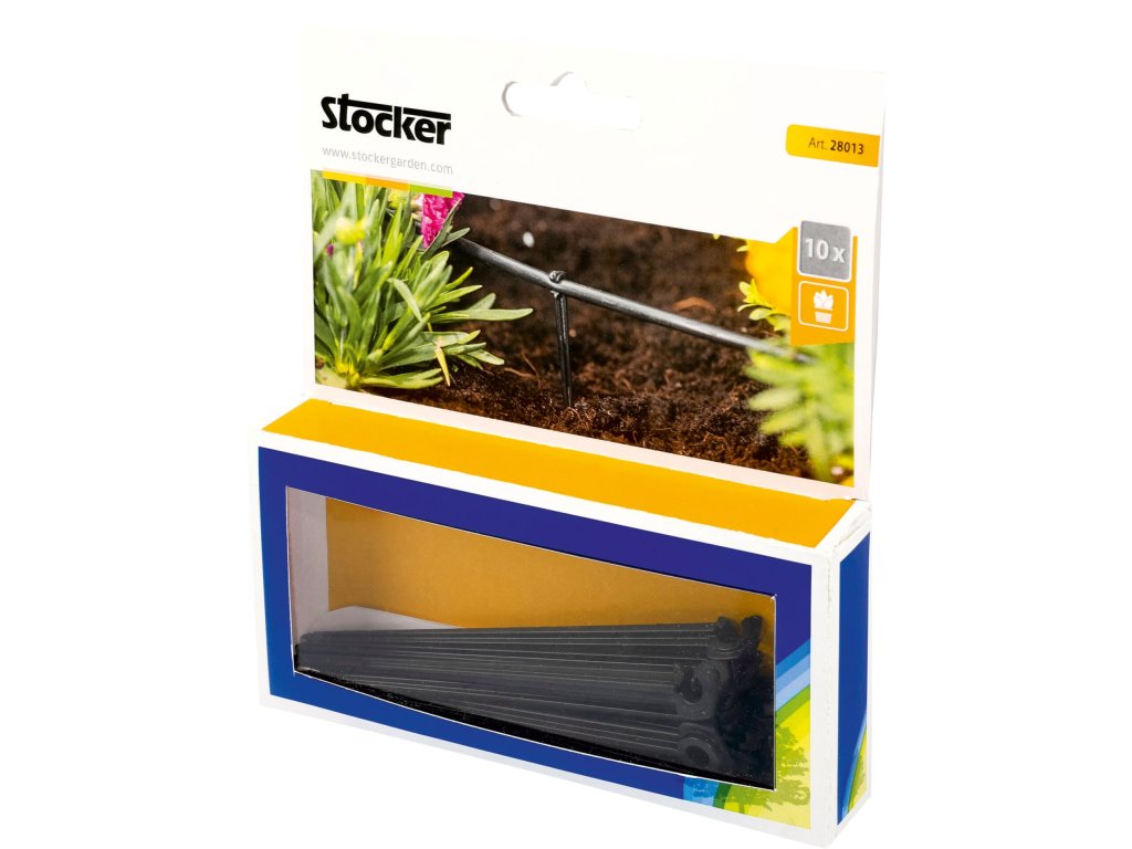 Držiak je praktickým doplnkom na uchytenie mikro hadice povrchového zavlažovacieho systému, ktorý nesmie byť zakopaný do zeme. Hadica sa vsunie do hornej spony držiaka, hrot zabodneme do zeme.