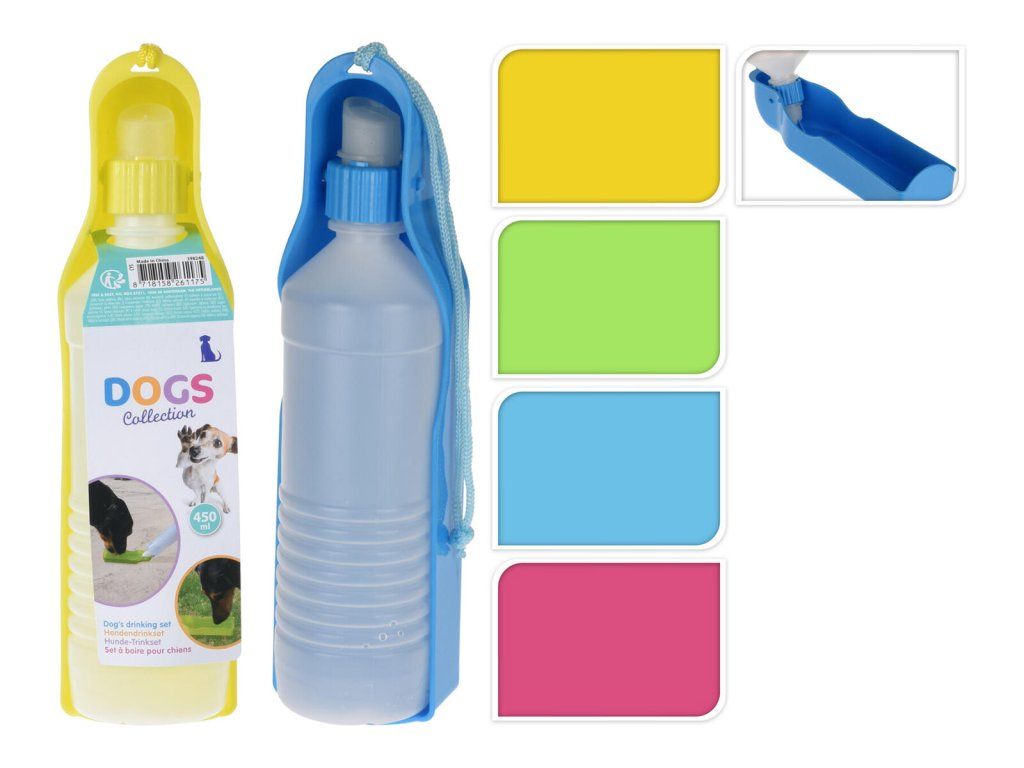 Fľaša pre psa 450 ml, PH/PP mix farieb. objem: 450 ml rozmery: 26 x 7,5 x 6,5 cm hmotnosť: 85 g materiál: HDPE telo, polypropylénový držiak mix farieb: žltá, ružová, modrá, zelená Prenosná fľaša pre psov je skvelá na cesty s Vašim maznáčikom.Dodatočné parametre
