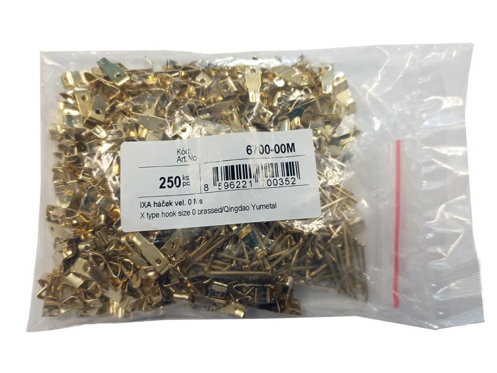Háčik IXA veľkosť 0 Ms (250 ks). balenie: 250 ks výška cca: 1,8 cm šírka cca: 0,6 cm materiál: kov Kovový pomosadený háčik na stenu. Balenie obsahuje háčik a pomosadený klinček na prirobenie do rôznych povrchov.Dodatočné parametre