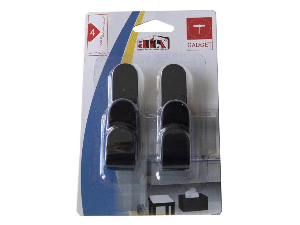 háčik samolepiaci obdĺž. ČER ( 4 ks ) balenie: 4 ks farba: čierna tvar: obdĺžnik Samolepiace háčiky je možné využiť kdekoľvek v domácnosti vďaka samolepiacej páske. Jednoduché a rýchle uchytenie na ktorýkoľvek povrch.Dodatočné parametre
