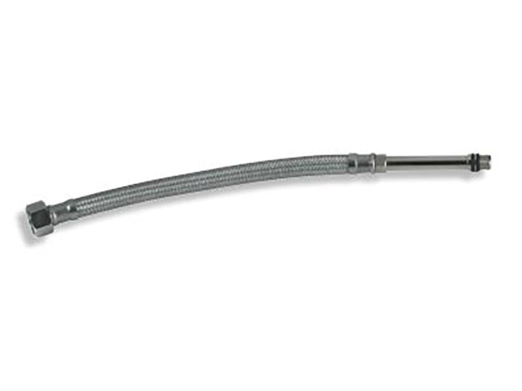 Hadica prívodná M10 x 3/8" E 70 cm + nadstavec. rozmery: M10 x 3/8" E dĺžka: 70 cm materiál: nerez Prívodná nerezová opletená hadička. Na jednom konci prevlečná matka, na druhom závit pre pripojenie do stojančekovej batérie.Dodatočné parametre