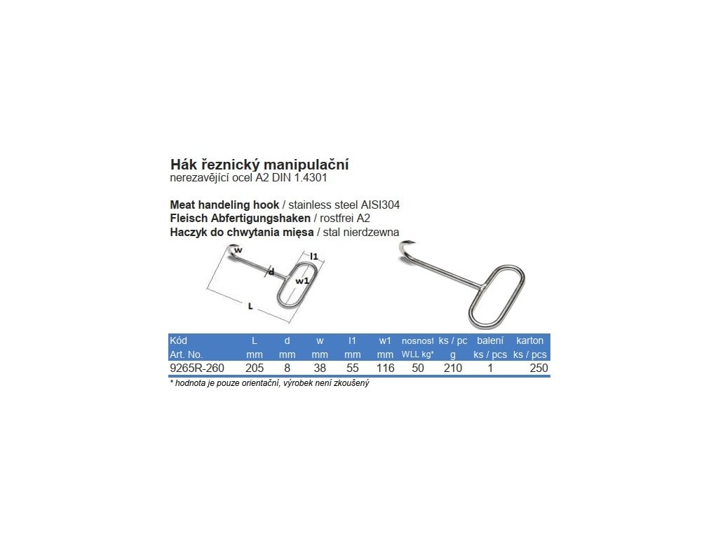 Hák mäsiarsky manipulačný nerezový