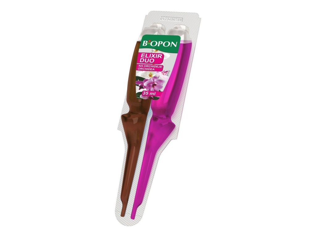 Hnojivo BOPON elixír DUO na orchidey 35 ml. objem: 35 ml Inovatívne dvojzložkové hnojivo je vhodné pre výživu a rýchlu regeneráciu všetkých druhov orchideí. Ružový kondicionér s makroživinami dodáva orchideám základné živiny potrebné na ich správny rast a kvitnutie. Hnedý regenerátor je bohatý na humínové kyseliny, ktoré orchidey posilňujú, zmierňujú stres spôsobený ich presádzaním alebo nesprávnou starostlivosťou. Kombinácia hnojiva a regenerátora obnovuje vitalitu orchideí, ich zdravý vzhľad a krásnu farbu kvetov a listov. Aplikátor s dvoma segmentmi umožňuje dávkovanie správnej dávky hnojiva a regenerátora súčasne. Obe tekutiny sa nachádzajú v samostatných segmentoch, uchovávajú si svoje dôležité vlastnosti po dlhšiu dobu. Aplikácia: jeden aplikátor na jednu rastlinu na mesiac. Používajte prípravky na ochranu rastlín bezpečne. Pred použitím si vždy prečítajte označenie a informácie o prípravku.Dodatočné parametre