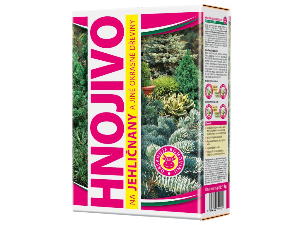 Hnojivo na ihličnany a iné okrasné dreviny je zmesné granulované organominerálne NPK hnojivo. Prídavok organickej zložky, ktorá obsahuje fermentovaný hnoj, rastlinné zvyšky a kakaové šupky, do pôdy dodáva okrem základných a stopových živín aj organické látky.