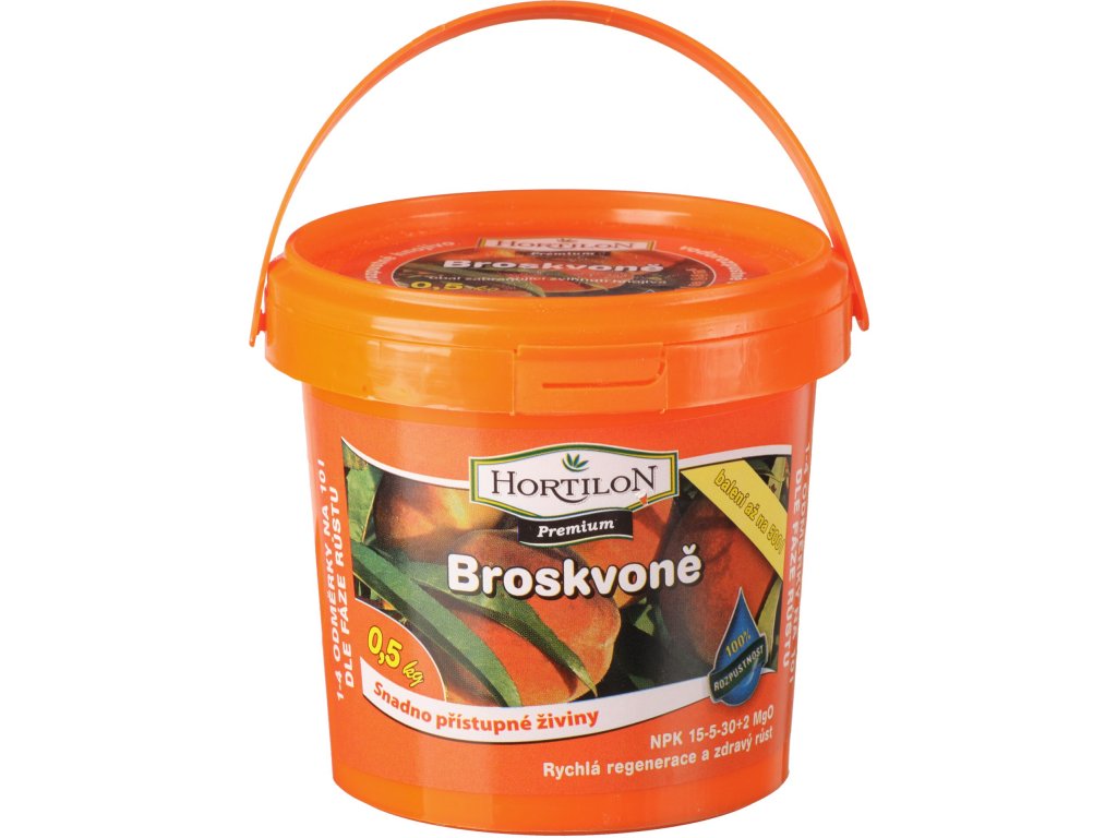 Roztok pripravíme rozmiešaním Hortilonu na broskyne vo vode podľa dávkovania. Prihnojujeme 1x týždenne až 1x za 14 dní. Dávkovanie: Na začiatku vegetácie až do fázy kvitnutia 20 g na 10 litrov vody.