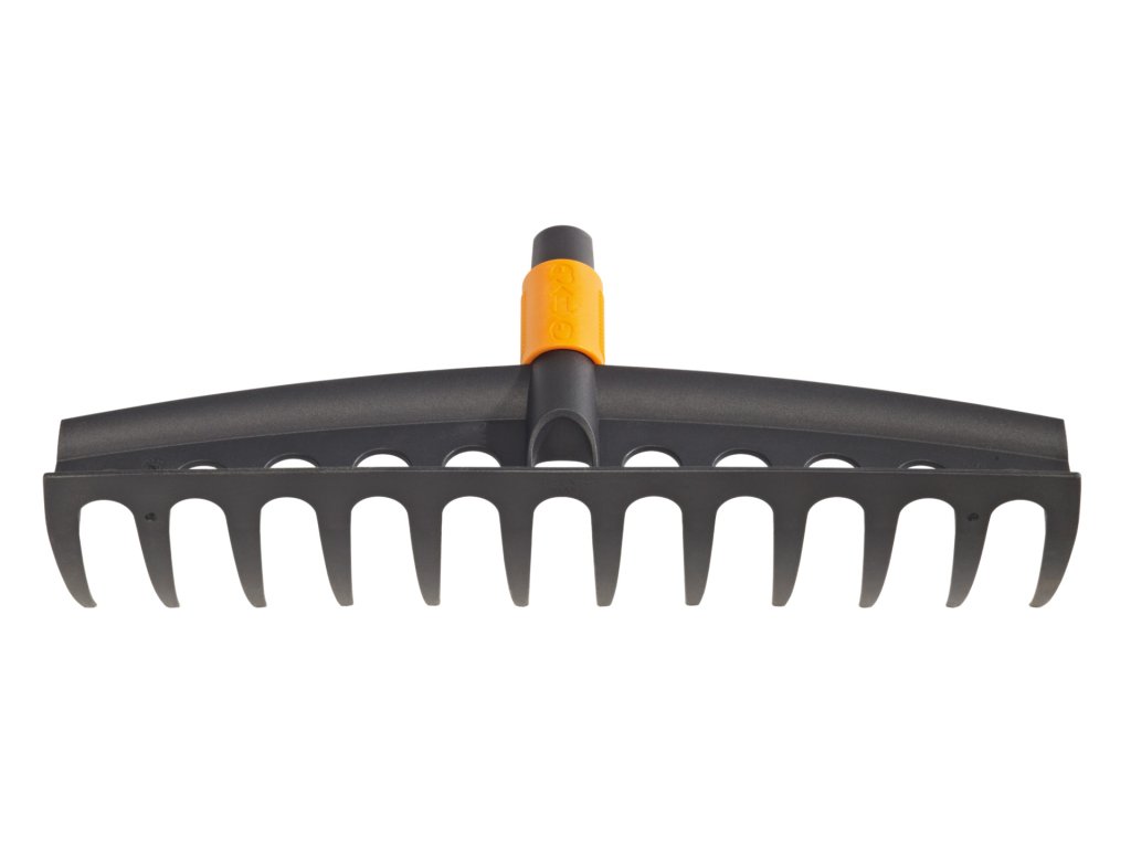 Unikátny automatický dvojitý zamykací systém Fiskars QuikFit™ sa stal víťazom ocenenia Red Dot Award: hrabanie trávy, buriny, machu, na spracovanie pôdy a na prípravu záhonov na siatie. Majú 12 zubov z pevného kompozitného materiálu FiberComp. Systém QuikFit umožňuje spojenie rôzneho záhradného náradia s jedinou násadou. Šírka: 410 mm, dĺžka: 152 mm, hmotnosť: 260 g.
