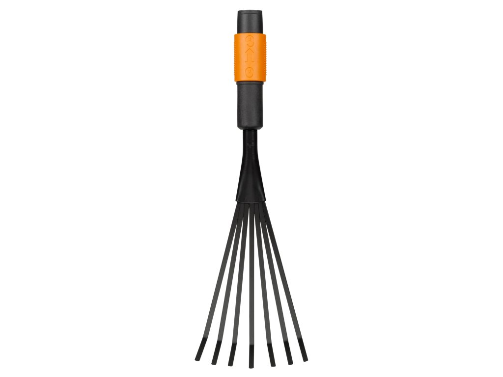 Unikátny automatický dvojitý zamykací systém Fiskars QuikFit™ sa stal víťazom ocenenia Red Dot Award: úzke záhony a hrabanie medzi rastlinami - na odburinenie púpav, lopúchov a iných burín v trávniku či na záhonoch. Trvanlivá objímka z materiálu FiberComp so 7 oceľovými prstami. Systém QuikFit umožňuje spojenie rôzneho záhradného náradia s jedinou násadou. Na hrable je možné nasadiť QuikFit krátku alebo strednú násadu. Šírka: 124 mm, dĺžka: 364 mm, hmotnosť: 210 g.