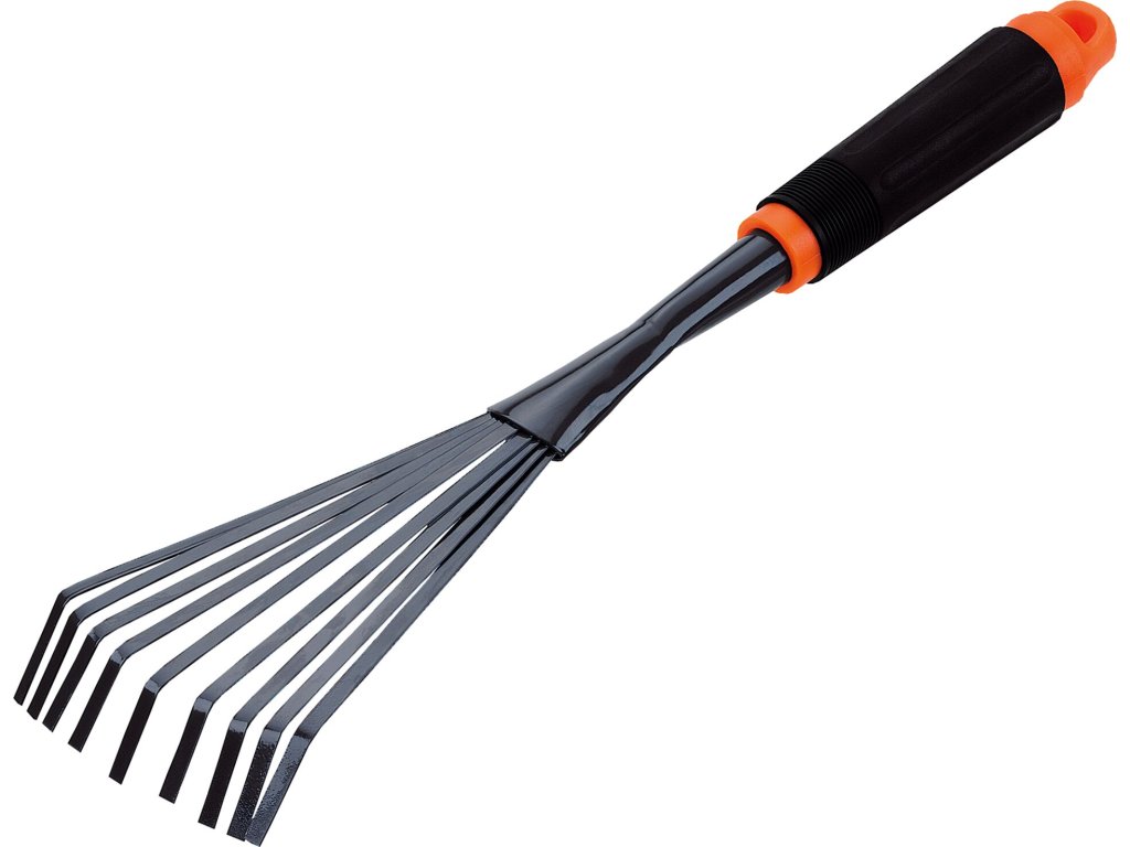 Švédske hrable malé s plochými tŕňmi na drobné práce na záhrade. Masívna plastová rukoväť so závitom, ktorý umožňuje naskrutkovanie dlhej kovovej násady. Násadu je možné dokúpiť a využiť pre celý rad ručného náradia Stocker (772018).