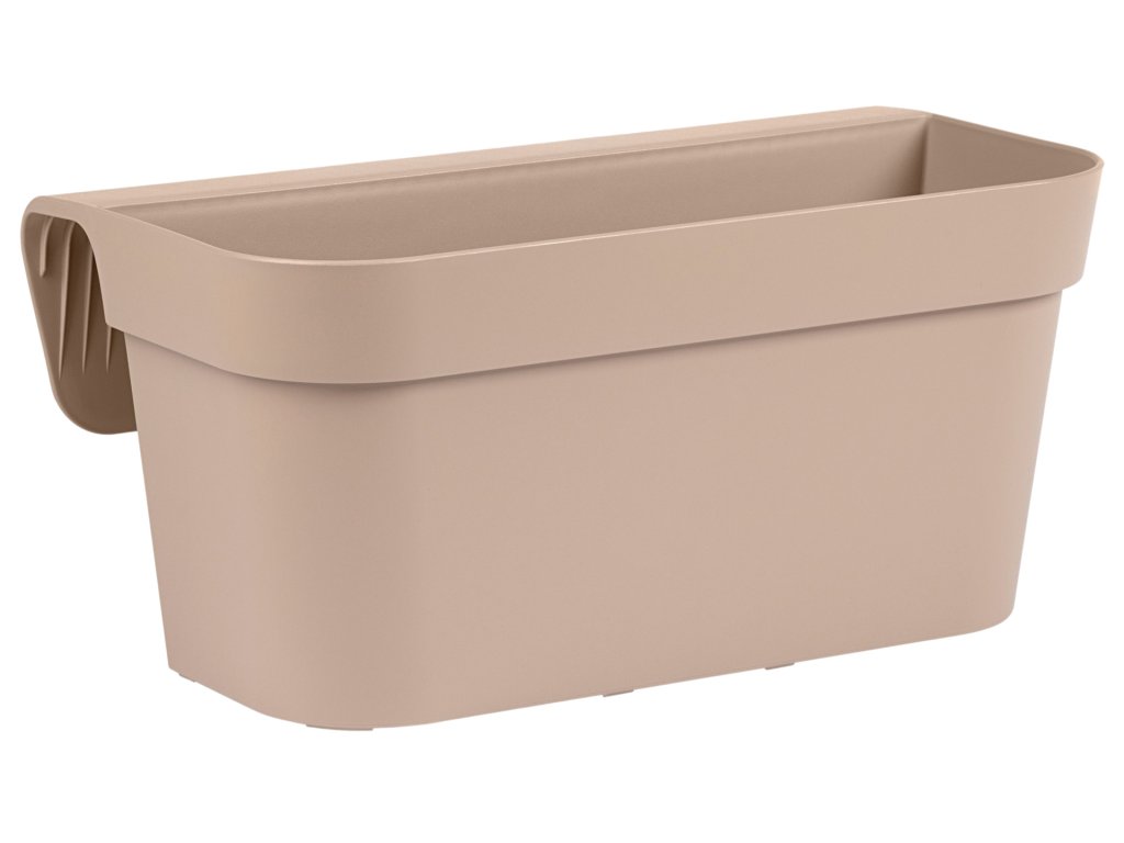 Moderný plastový farebný kvetináč na zábradlie talianskej výroby.