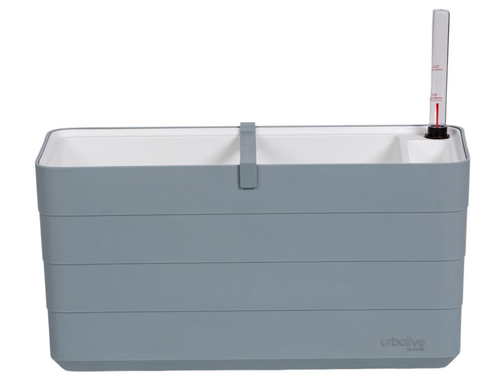 Samozavlažovací kvetináč v modernom a dômyselnom dizajne. Vyrába sa v troch veľkostných variantoch a 6 farebných prevedeniach s netradičnou farebnou vložkou. Zalievanie je bezstarostné - Berberis má veľkú zásobáreň vody s hladinomerom, dostatočne veľký otvor na zalievanie a prepad vody. Hodí sa na pestovanie kvetín, bylín i drobnej zeleniny. Hrantík má objem na 6 l substrátu a zásobu vody max. 3 l. šedomodrá + biela
