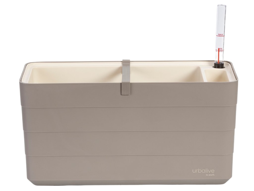 Samozavlažovací kvetináč v modernom a dômyselnom dizajne. Vyrába sa v troch veľkostných variantoch a 6 farebných prevedeniach s netradičnou farebnou vložkou. Zalievanie je bezstarostné - Berberis má veľkú zásobáreň vody s hladinomerom, dostatočne veľký otvor na zalievanie a prepad vody. Hodí sa na pestovanie kvetín, bylín i drobnej zeleniny. Hrantík má objem na 6 l substrátu a zásobu vody max. 3 l. taupe + slonová kosť&