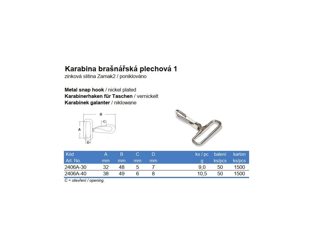 Karabína brašnárska plechová 1