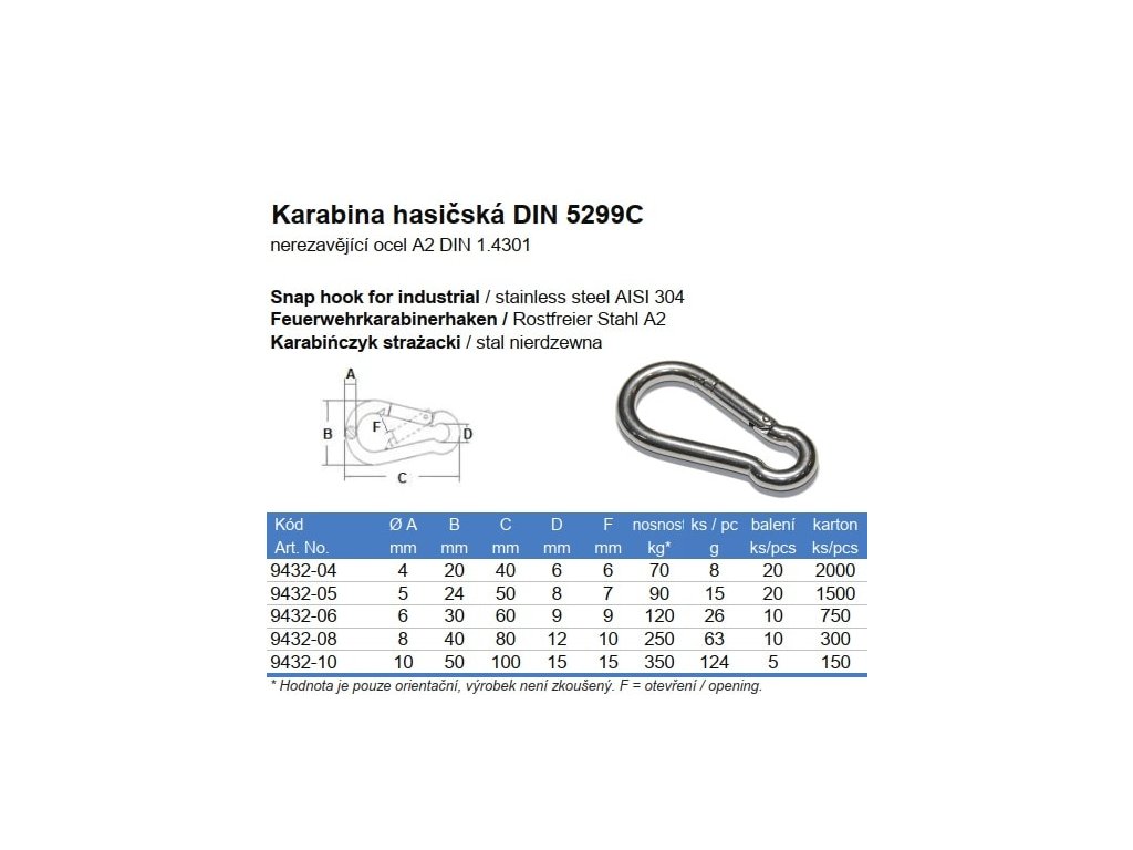 Karabína hasičská DIN 5299C nerez A2