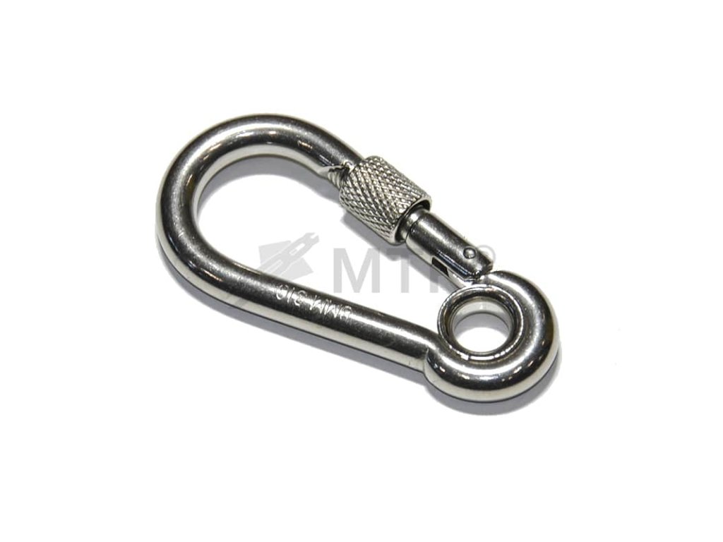 Karabína hasičská s okom a poistkou DIN 5299A nerez A4