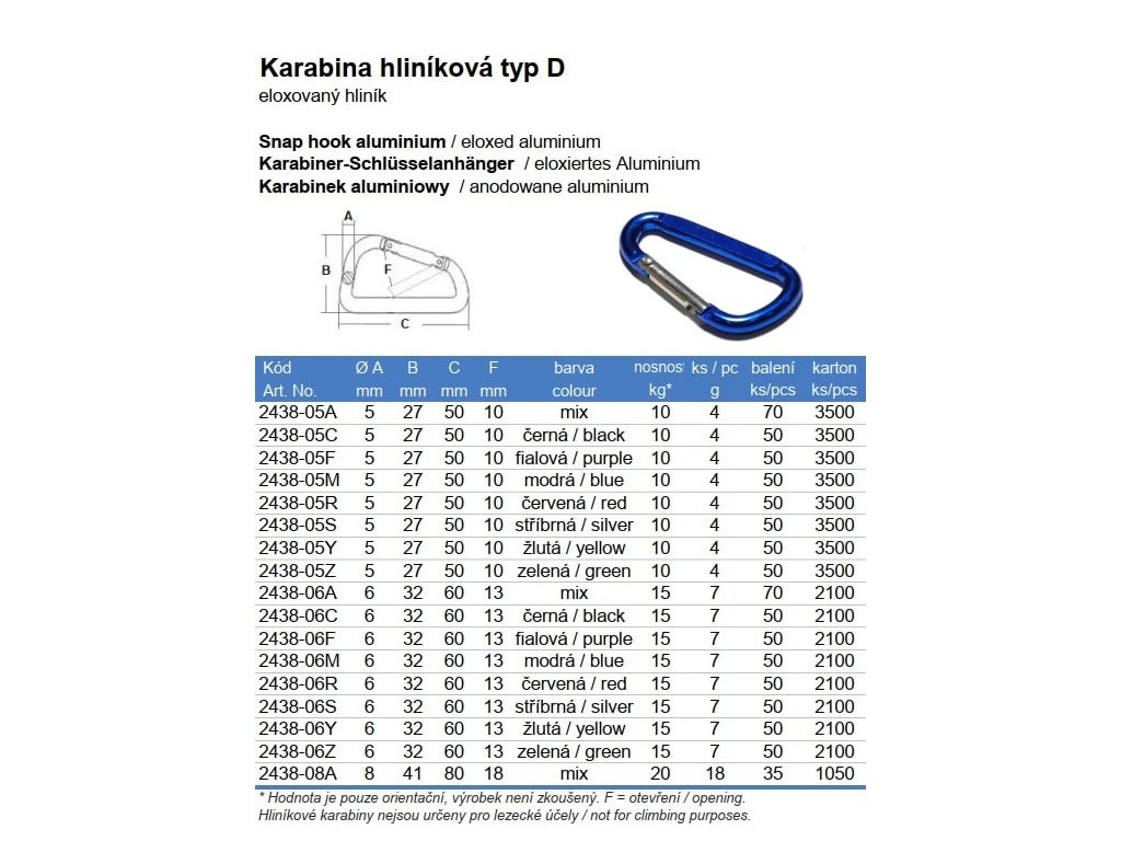 Karabína hliníková typ D