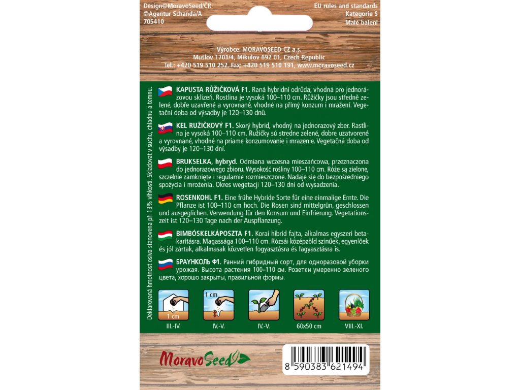 Rastlina je vysoká 100-110 cm. Ružičky sú stredne zelené, dobre uzavreté a vyrovnané, vhodné na priamy konzum aj mrazenie. Vegetačná doba od výsadby je 120-130 dní.