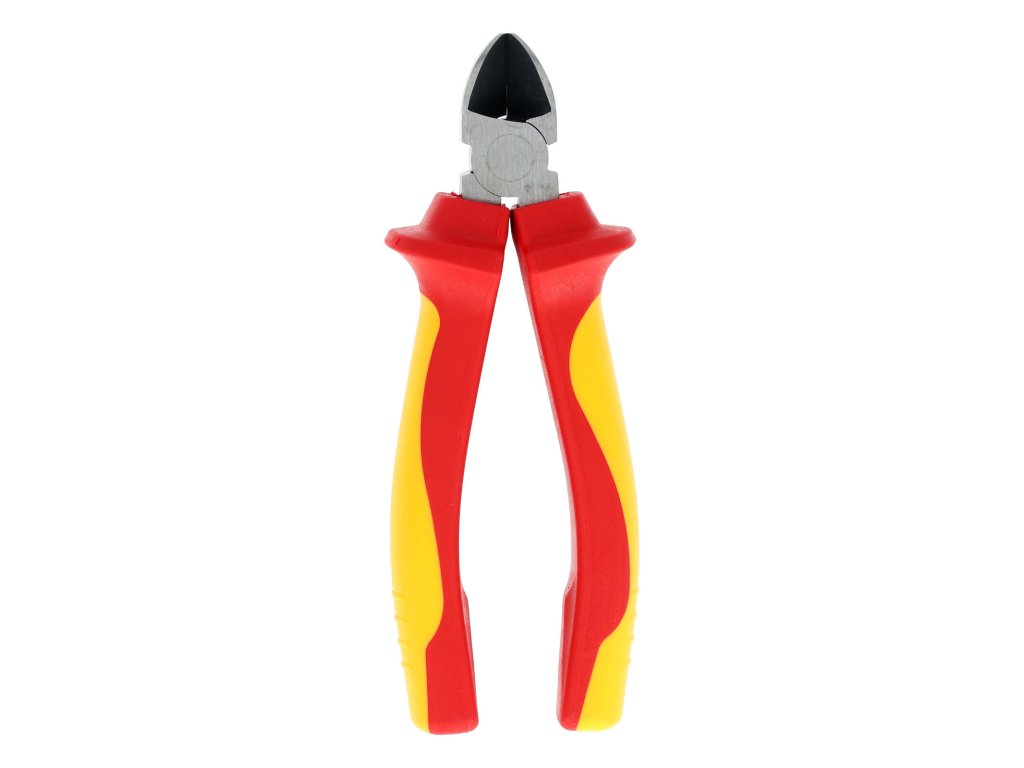 Kliešte štiepacie bočné 160 mm, elektro. dĺžka: 160 mm Izolované bočné kliešte 160 mm / 6 ", 1000 V s certifikáciou VDE / GS. Materiál 60CrV w / leštené, kalené, tvrdosť ostrie cca 58-62 HRC. Dvojfarebná rukoväť TPE, možno používať od -25 ± 3 stupňov.Dodatočné parametre