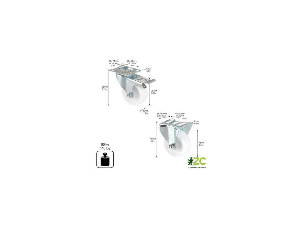 Sada transportných koliesok WAGNER sú vyrobené z vysoko kvalitného plastu. Puzdro je vyrobené z pevnej priemyselnej ocele, ktorá bola pozinkovaná na ochranu proti korózii.