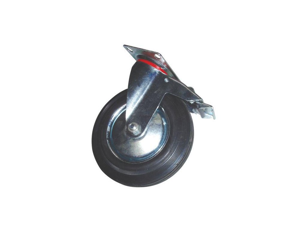 priemer: 200 mm nosnosť: 120 kg Otočné koliesko s brzdou, ktoré je určené pre nerovné a tvrdé povrchy, často montované pri kontajneroch na triedený odpad.Dodatočné parametre