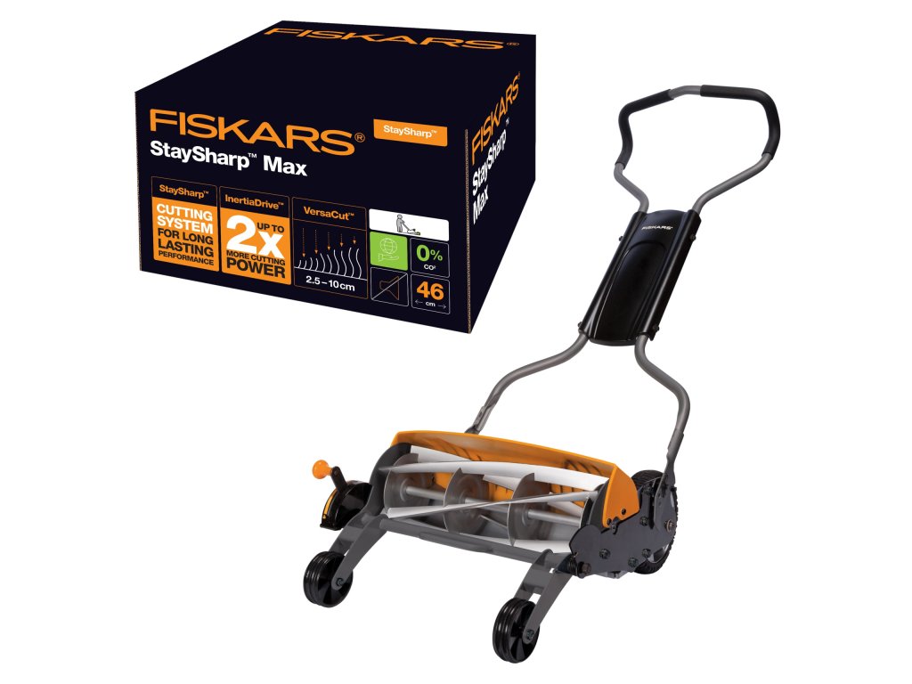 Nová kosačka Fiskars StaySharp™ Max je v súčasnosti najpokrokovejšou vretenovou kosačkou na svete. Prináša riešenie problémov, ktoré sú vlastné tradičným vretenovým kosačkám. Kosačka Fiskars&StaySharp™ Max kombinuje patentovanú technológiu s perfektnou ergonómiou. V porovnaní s tradičnými vretenovými kosačkami je ľahšie ju tlačiť, má väčší žací výkon, nože zostávajú dlho ostré a má väčší rozsah nastavenia výšky trávnika. Je skutočnosťou, že StaySharp™ Max vyhráva v každej z týchto oblastí.