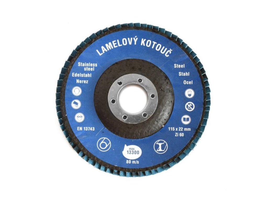 Kotúč lamelový brúsny Ø115 x 22 mm, P60, Zirkón Klasik
