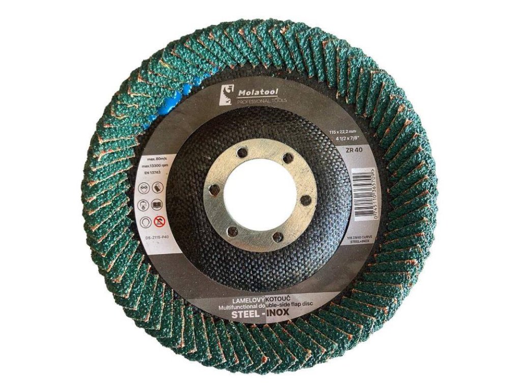 Kotúč obojstranný lamelový brúsny 115 mm, P40, Molatool Zirkón