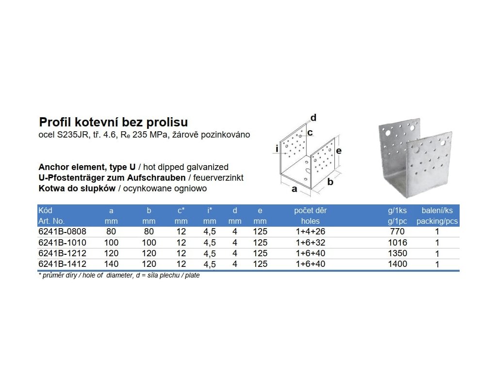 Kotvový profil bez prelisu