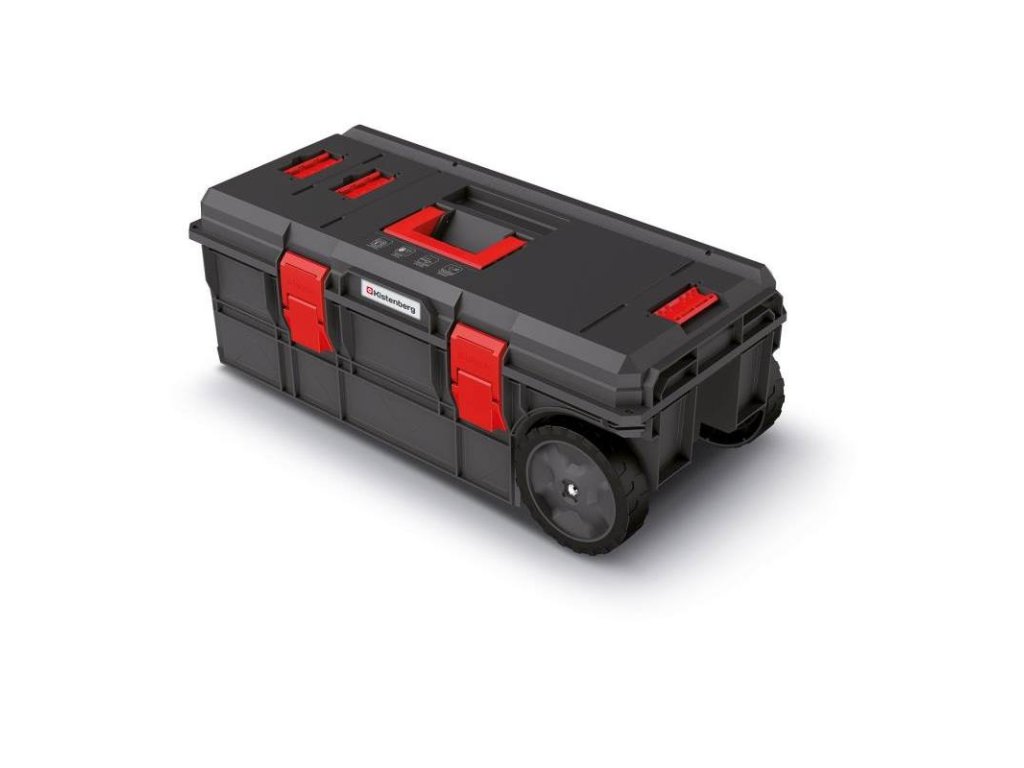 - vo vekách vybraných kufrov na náradie sú zabudované hliníkové koľajnice, ktoré umožňujú transformáciu kufra na kompaktný a stabilný stôl vhodný pre dielenské práce.