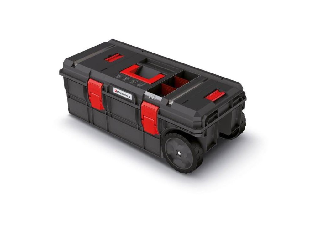 - vo vekách vybraných kufrov na náradie sú zabudované hliníkové koľajnice, ktoré umožňujú transformáciu kufra na kompaktný a stabilný stôl vhodný pre dielenské práce.