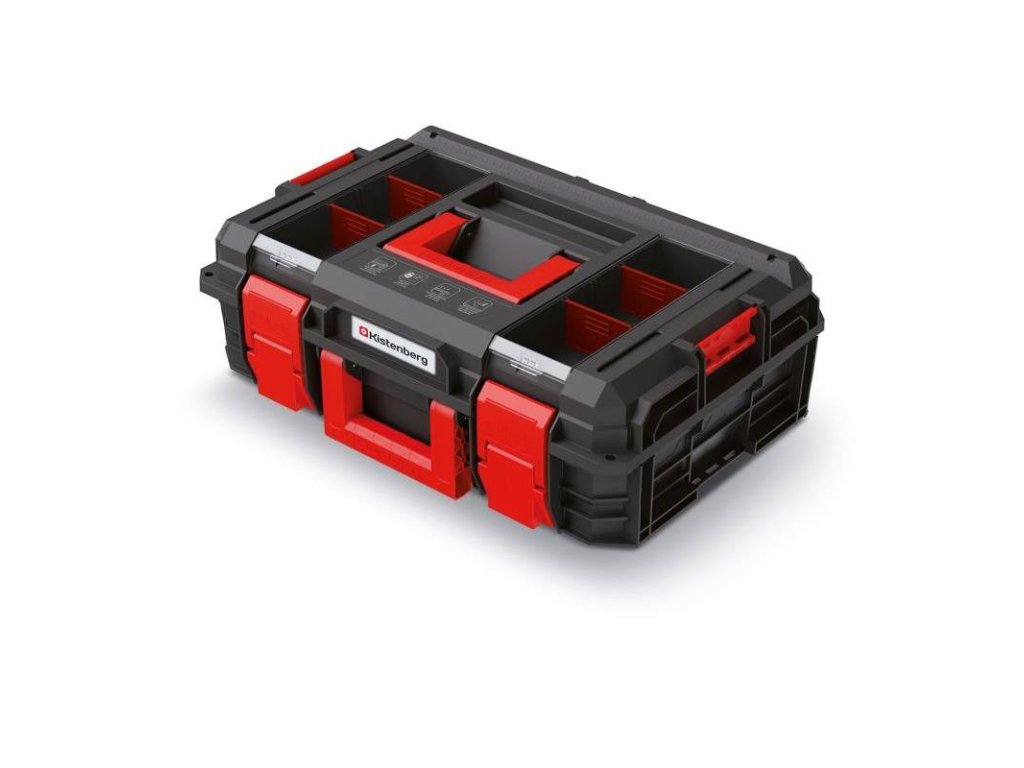 - vo vekách vybraných kufrov na náradie sú zabudované hliníkové koľajnice, ktoré umožňujú transformáciu kufra na kompaktný a stabilný stôl vhodný pre dielenské práce.