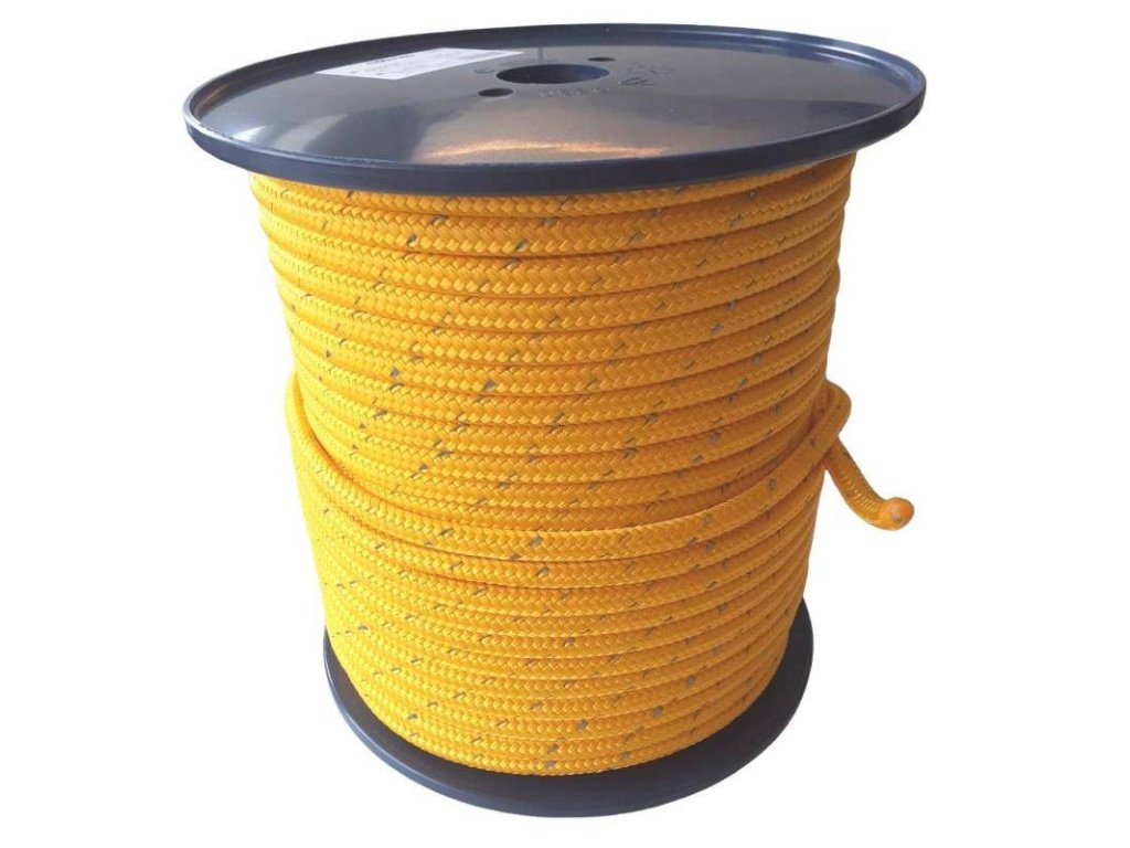 Lano pletené s jadrom PPV 10 mm, 16 pramenné s reflexnou páskou, 100 m, žlté, ENPRO