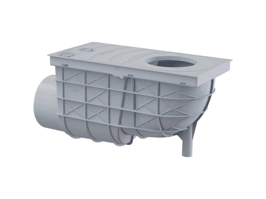 - obsahuje tesniace krúžky pre pripojenie dažďových zvodov rôznych priemerov (80, 90, 110, 125 mm), veko odkvapového zvodu pač vhodný pre najnižšiu stavebnú výšku kanalizačného systému