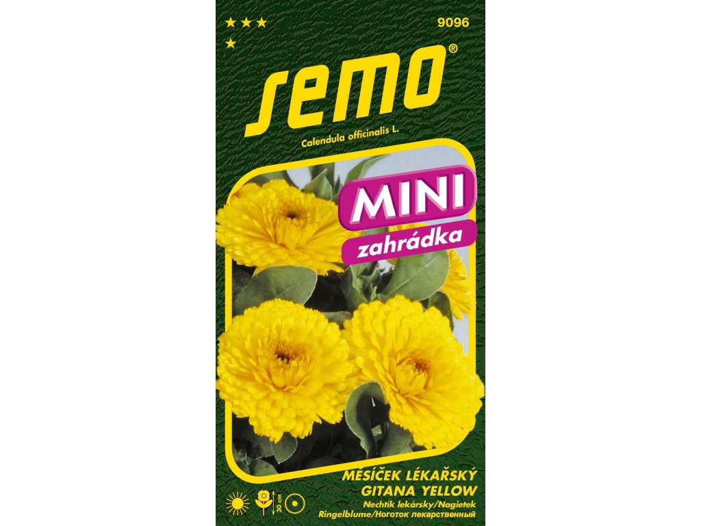 Nechtík lekársky GITANA YELLOW - kolekcia MINI - nenáročná vetvená letnička s jazykovými kvetmi jasne žltej farby, kompaktná rastlina súkvetia.