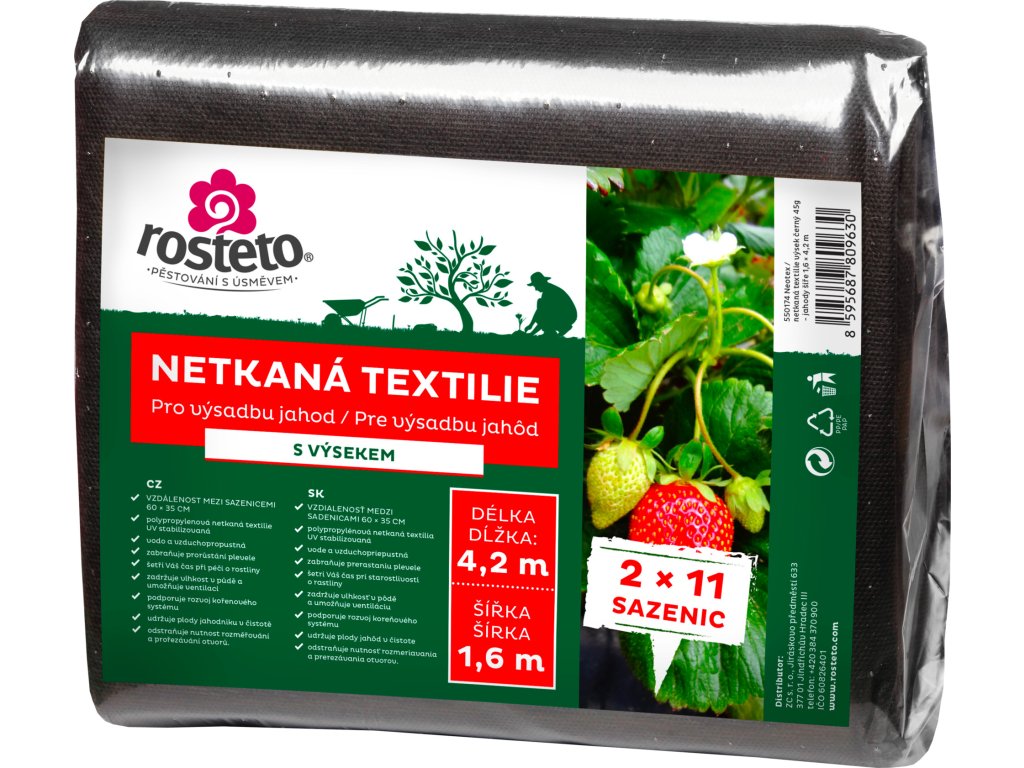 Neotex / netkaná textília Rosteto - výsek čierny 45g - jahody šírka 1,6 x 4,2 m