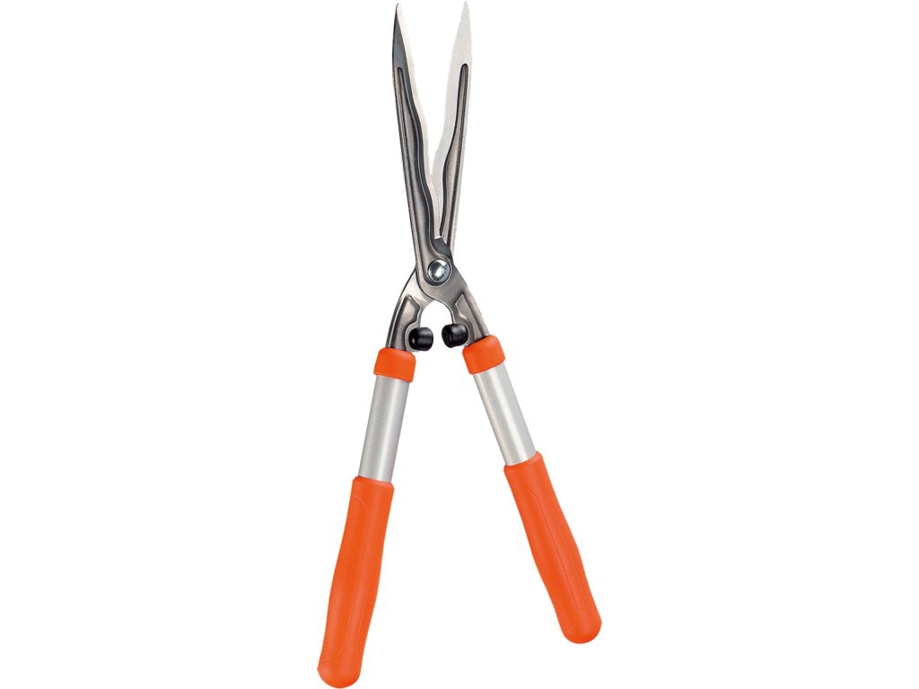 Záhradnícke nožnice určené na strihanie živého plotu, úpravu kríkov a krovín. Nožnice majú zúbkovanú čepeľ. Ergonomicky tvarované rukoväte zaisťujú protišmykové držanie a bezpečný úchyt.