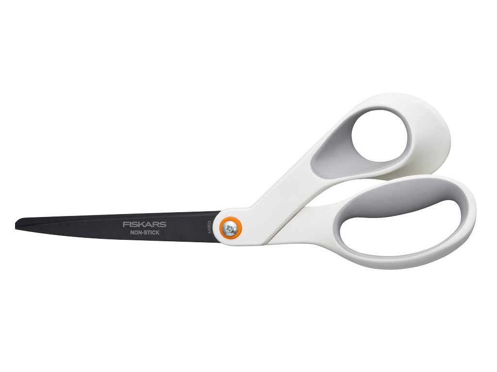 - Univerzálne nožnice Fiskars Non-Stick™ sú ideálne pre strihanie lepivých materiálov.