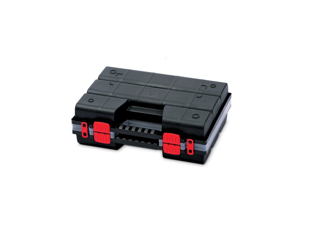 Prenosný dvojitý ručný organizér na skrutky, matice, podložky a iný drobný materiál. Kufrík je čiernej farby s červenými priehradkami a červenými zámkami. Kufrík je pre ideálny pre každého majstra. Vhod ale príde napríklad aj rybárom, ktorí v ňom môžu uschovať háčiky, návnady a pod. Alebo pre modelárov, ktorí si chcú mať malé predmety prehľadne upratané.