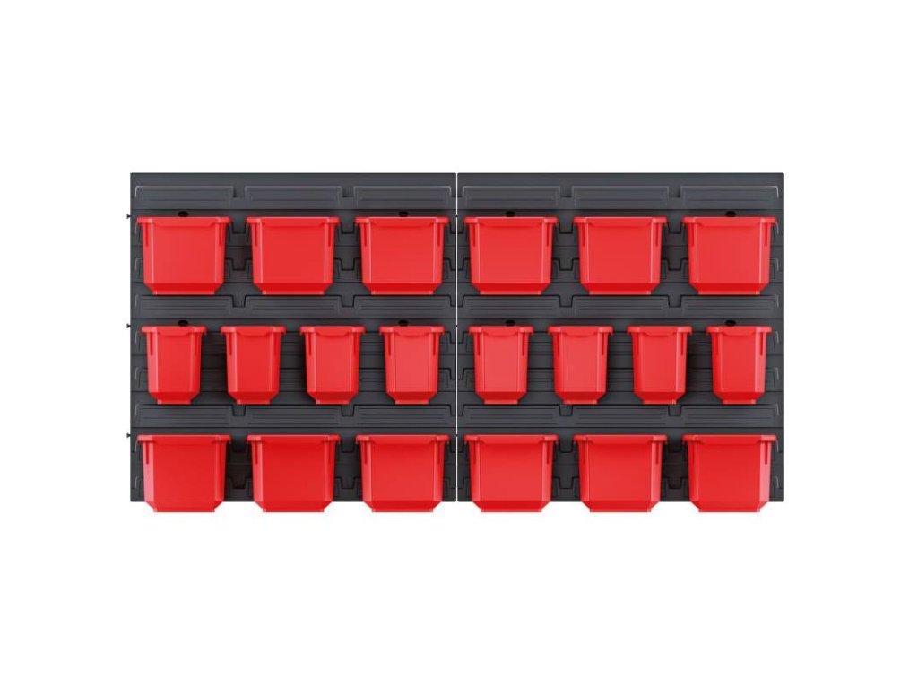 - základná doska čiernej farby určená na prichytenie na stenu sa skladá z dvoch častí, ktoré sú opatrené variabilnými závesmi pre jednotlivé boxy