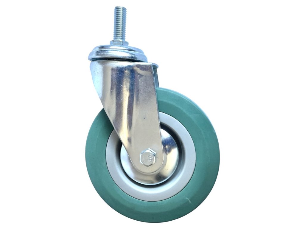 Otočné pojazdové koleso vyrobené zo šedého kaučuku s čapom M12 je vhodné pre ťažší náklad a jeho prevoz.