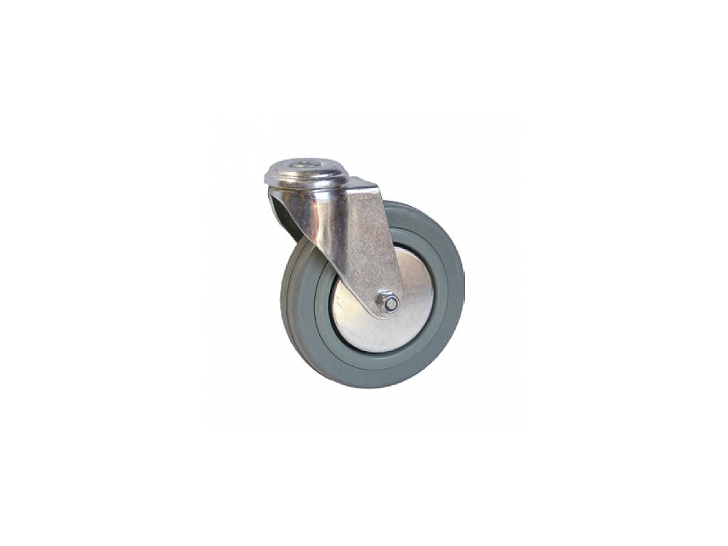 Otočné pojazdové koleso d125/80kg, šedý kaučuk, klzné ložisko, s dierou pre čap